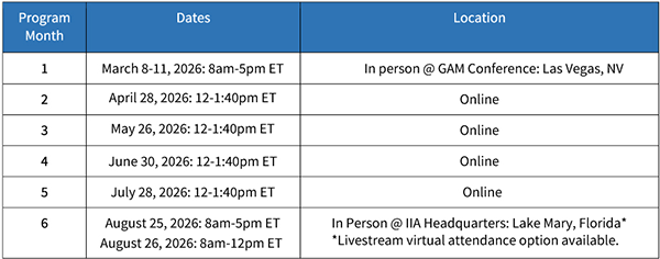 - Program Month 6 (12 CPEs): Final In-Person Session with Live-Stream option